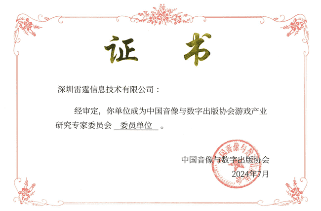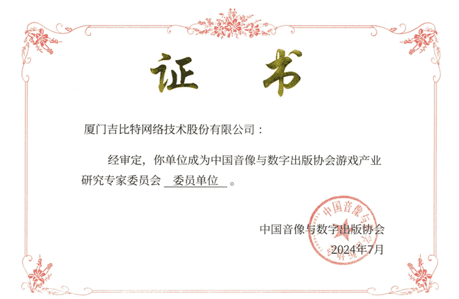 2024年7月25日,,中国音像与数字出版协会游戏产业研究专家委员会(以下简称“中国音数协游戏专委会”)成立大会在上海市召开,,,厦门J9.COM网络技术股份有限公司及其子公司深圳雷霆信息技术有限公司(以下统称“公司”)正式成为中国音数协游戏专委会委员单位。。。