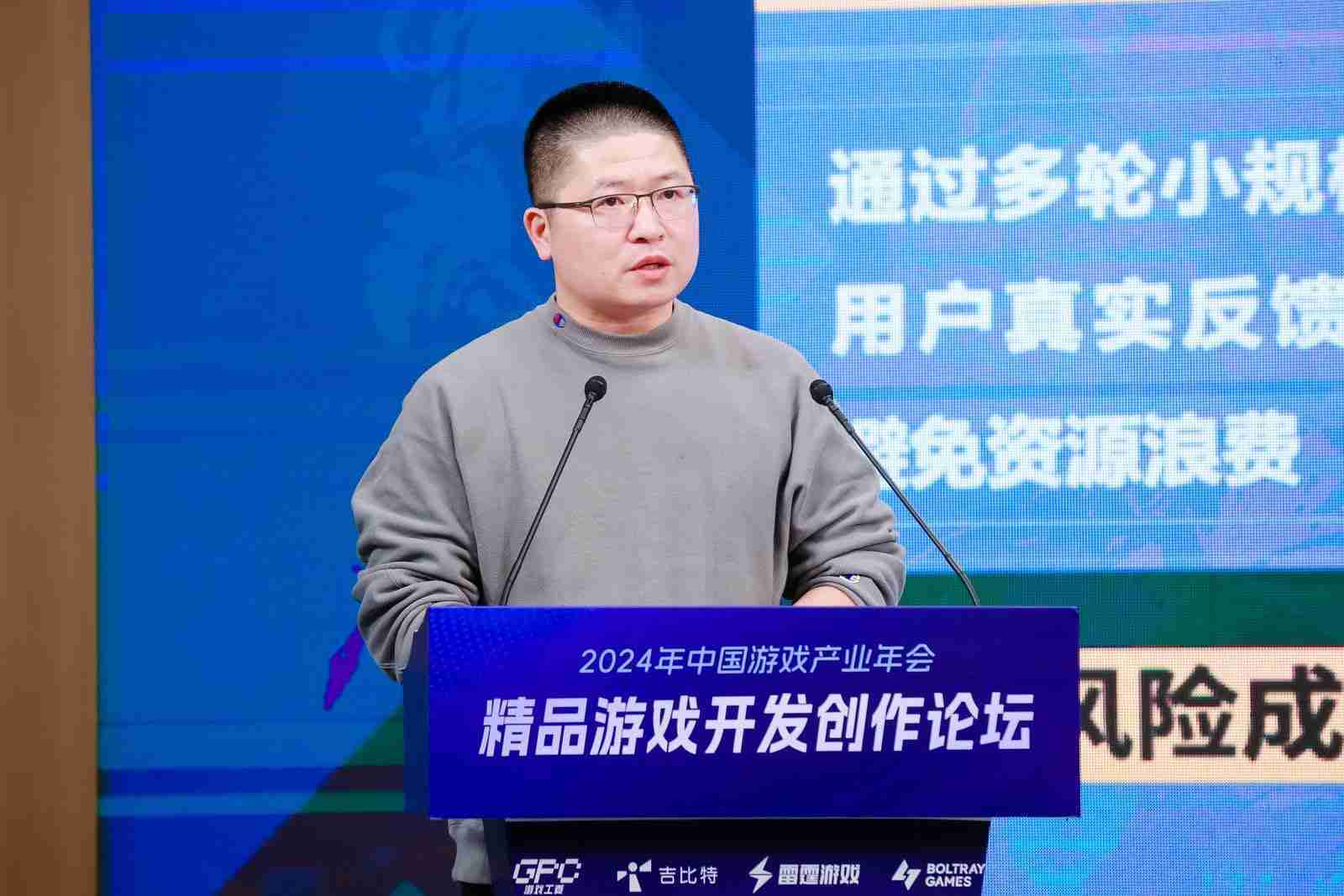 以《一念逍遥》为例,,,,2018年公司创始人萌生想做修仙题材的放置游戏的想法,,于是找了两位同事讨论了一下产品的概念,,,,这两位现在是项目的制作人,,,,花了三周的时间把原型做出来,,并且确定最初的战斗原型,,,,以及整个养成的节奏。。。。通过几次版本迭代验证后,,,,也确定后面的内容应该怎么拓展,,,最终在一年左右时间这个项目上线了。。当时我们内部有同事看到《⼀念逍遥》上线,,,,认为品质还不够完美,,,但是整体营收还不错。。。。就在想那是不是以后我们都做这样的产品????但实际这是错误的认知,,我们内部不是这么看的。。。游戏在那个时间点上市,,,因为有些市场的考量和营销点的考虑,,并不是希望所有项目都是这样。。。如果它有更好的契机,,,,希望它可以做得更大、、、更好,,,希望在内核玩法确定之后,,,,外围投入可以越大越好,,,,所以后面的几个项目是往这个思路上做。。。