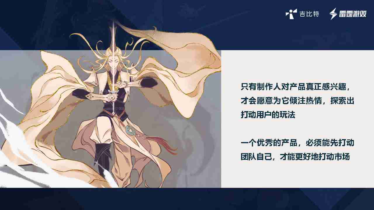 我们发现成功的产品往往是先发于人,,,通过在细分的赛道中形成鲜明的特点,,,,占据一席之地。。。。比如东极六感田海博在做的《二十四节气》《榫卯》产品,,可以很快让用户抓到新意点。。。。同时也观察到,,不论是单机买断的项目还是修仙手游,,我们始终贯彻一个原则,,拒绝做微创新,,不做仅仅只是在题材上,,,或者玩法上浅层次的调整。。我们需要的还是从根本上,,,能够打动玩家核心体验的不同,,,,这是我们对核心体验差异化的定义。。。在我们做产品之前,,,,给自己定了一个差异点,,想做轻松而步伐深入的玩法,,,,希望可以让玩家比较容易上手,,,,同时可以在长期体验中发现更多乐趣,,,基于这个角度,,,才会对市场做更深层次的挖掘,,最终从产品的结果来看,,,我们是获得到用户的认可。。。。