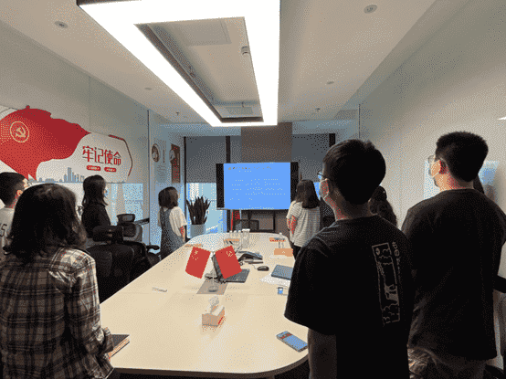 而后,,,全体党员一起重新学习了解了目前的入党流程要求,,,各支部也将在后续工作中进一步发挥支部职能,,,做好发展党员工作。。。。最后,,全体党员面向党旗,,,重温入党誓词。。。